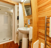 1 x Bathroom including full size shower, vanity, heated towel rail & flushing toilet.