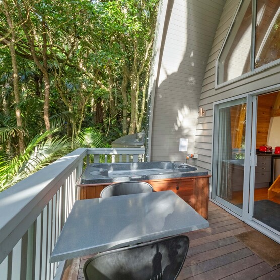 Nestled within a lush native bush forest, the Onetangi Forest Chalet is a unique accommodation like no other. Perfectly appointed, fully self contained & featuring a panoramic balcony Spa Pool, the surrounding canopy is home to many New Zealand native bird species including the Kaka, Kereru, Morepork and Piwakawaka - there are even glowworms at the gate! Close to Waiheke's most popular beach Onetangi (translation: Weeping Sands), the Onetangi Forest Chalet offers all the tranquility of a secluded retreat, but with wineries, restaurants, cafes, amenities & of course Waiheke's world famous beaches only a short stroll away.
