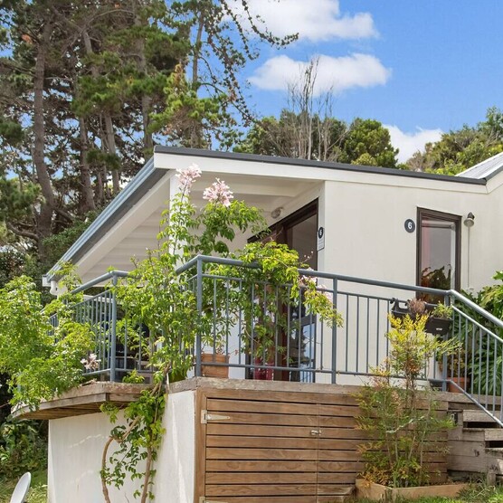 Our Chalets are the perfect mix of comfort & style, set hillside above one of Waiheke's most popular locations - Palm Beach.